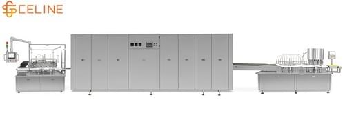 This machine is a washing, drying, and filling integrated unit for oral liquid production lines. It is mainly used for cleaning, drying, filling, capping, and sealing 10ml (20ml) easy-open cap (aluminum-plastic cap) straight tube bottles. It employs a screw-feed bottle washing system or a vertical ultrasonic bottle washing system, alternating pressurized water and air rinsing, and hot air circulating oven or quartz tube oven drying. The filling and sealing machine uses a 16-head local tracking filling system. The metering pump can be either a stainless steel pump or a ceramic pump. It features electromagnetic oscillation cap feeding and a ten-head planetary capping system. This unit boasts an advanced design and compact structure.