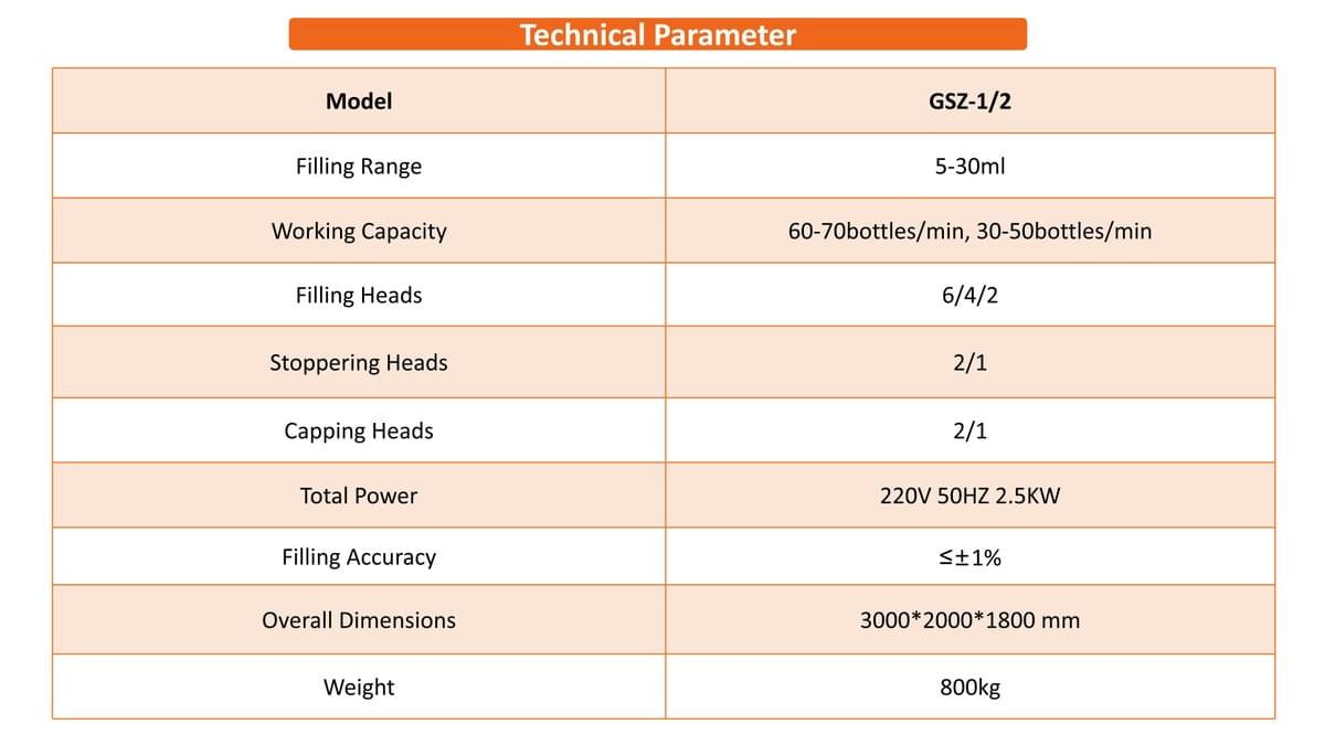 This machine is mainly suitable for filling, plugging and screwing (rolling) caps of various small-dose liquids, such as essential oils, injections, etc. Widely used in food, pharmaceutical, chemical industry and scientific research fields. This machine adopts peristaltic pump or 316L stainless steel injection pump for filling, and the filling accuracy is as high as 99%. The machine has compact structure, reasonable design, stable operation and long service life. The machine can be produced as a stand-alone machine, or can be combined with bottle washing machines, dryers and other equipment to form a linked production line. Fully comply with GMP requirements. This machine can upgrade the electrical configuration according to customer requirements.